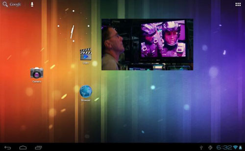 瑞芯RK3066 雙核4.1平臺實現的“超級畫中畫 多線程應用革命”功能,完美凸顯了RK30雙核CPU+四核GPU的優勢,和對用戶體驗的極大關注。該功能實現在線及本地視頻資源在獨立置頂浮動窗口內播放,真正實現了多線程應用的革命;超級畫中畫(Floating Video)可在平板屏幕上彈出一個新的視頻窗口,這個窗口可以隨時置頂在任何屏幕界面上;“超級畫中畫”功能,可以讓用戶脫離瀏覽器進行視頻播放,一邊觀看影視節目,一邊查看郵箱或瀏覽網頁,甚至和朋友QQ群聊,并可以實時拖動,縮放,最大最小化,以及播放、暫停、查找等操作,而不用在繁瑣操作中來回切換。這是目前android平板的一次技術和體驗的超越。