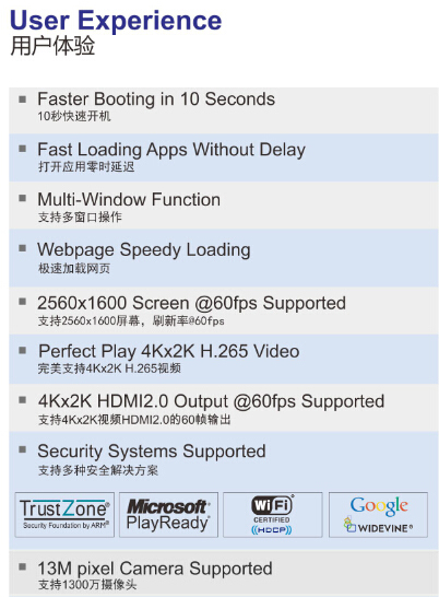 三大技術為瑞芯微獨家技術。這為采用RK3288處理器的OEM品牌廠商提供了更為強大的技術壁壘與核心競爭力。