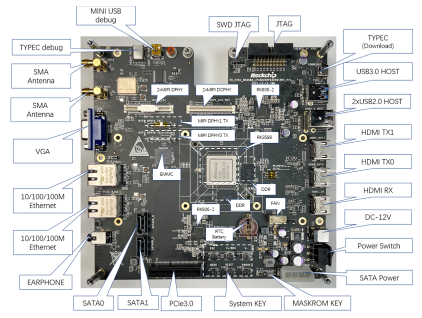 RK3588 EVB配備的豐富外設(shè)接口(如圖),適用于各類行業(yè)AIoT終端設(shè)備。