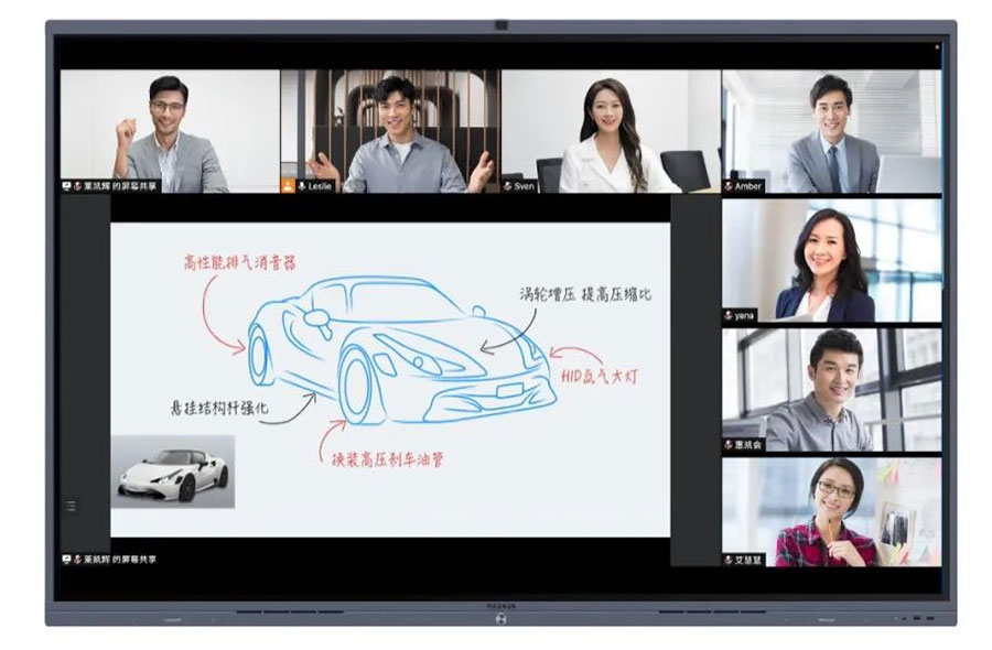 會中,騰訊會議Rooms可以讓企業參會人暢享高清視頻畫面,最多支持同時展示25位遠端與會者。產品可支持騰訊會議Rooms白板數據本地存儲及加載功能。書寫低延時,高效同步批注內容,拒絕會議思路因書寫延遲導致的會議中斷及低效等待。