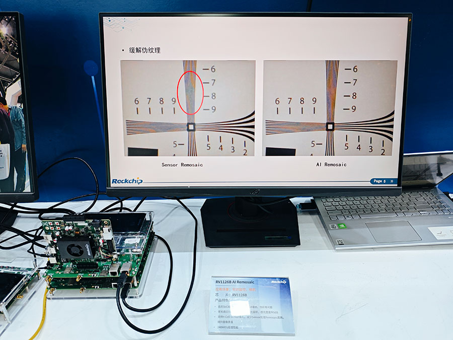 • 星光夜視AI-ISP:RV1126B集成專用 AI-ISP 硬件,運行 AI-ISP時無需占用通用的3T NPU 資源,較傳統 NPU 方案更節省帶寬與功耗。結合 AI Remosaic 技術實現 "日夜雙模自適應"—— 白天呈現超高清畫質,夜晚在超低照度下仍保持清晰成像。