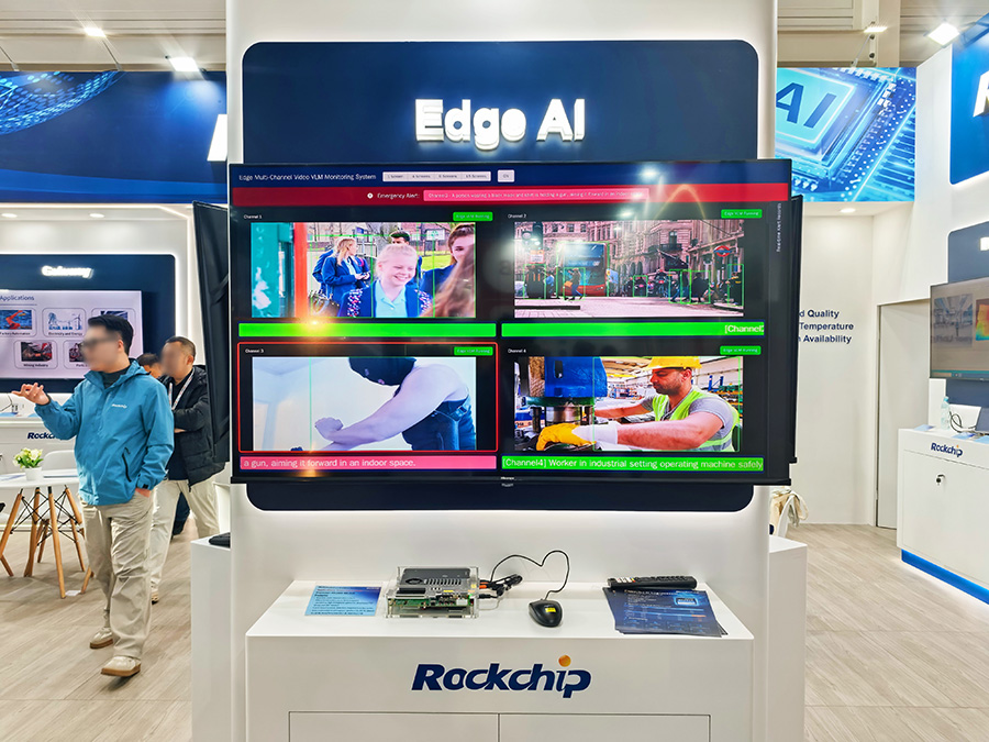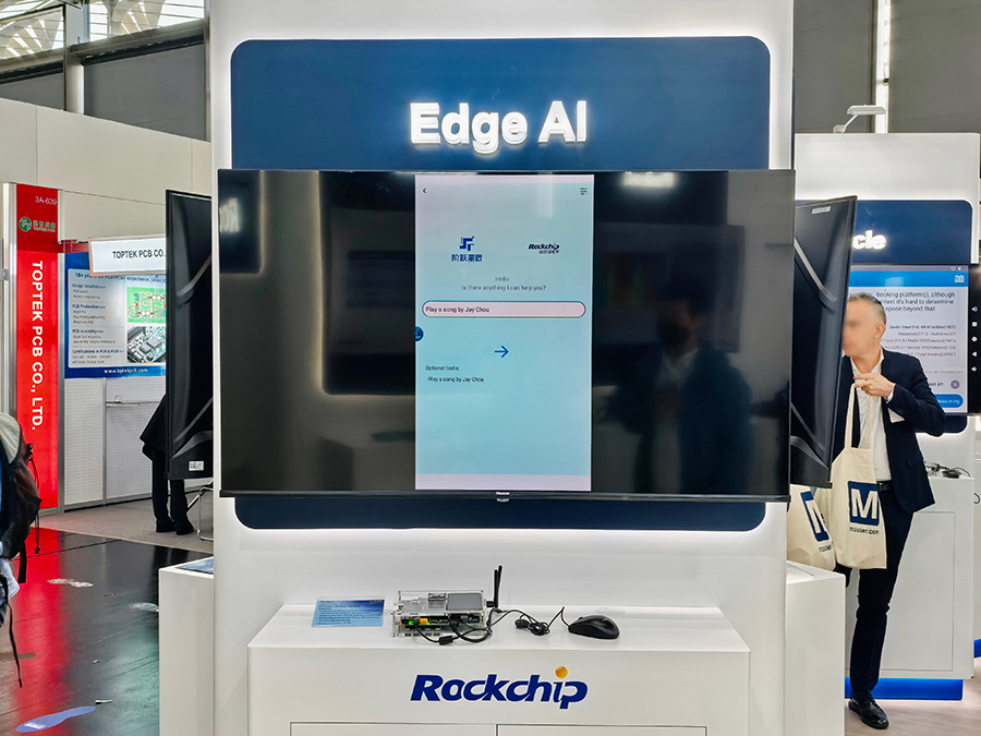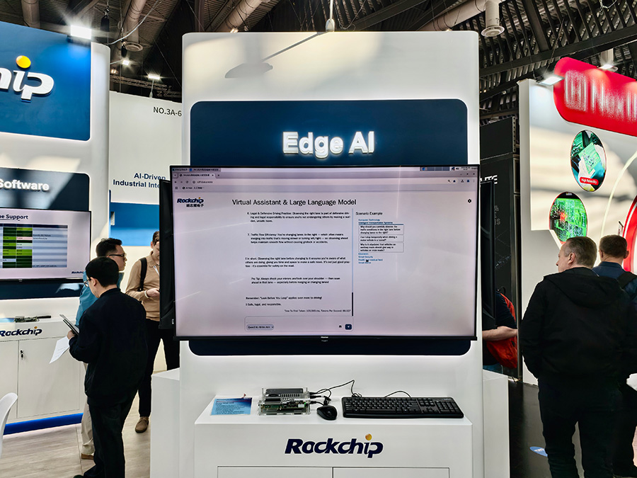 現場同時展示了AI數字人結合端側大模型,支持搭載Qwen3-VL-4B或Qwen2.5-7B大語言模型,實現完全離線的大模型推理,專為沉浸式AI數字人應用設計,適用于新零售、金融、醫療、政企等領域,標志著瑞芯微在端側多模態AI領域的布局已全面就緒。