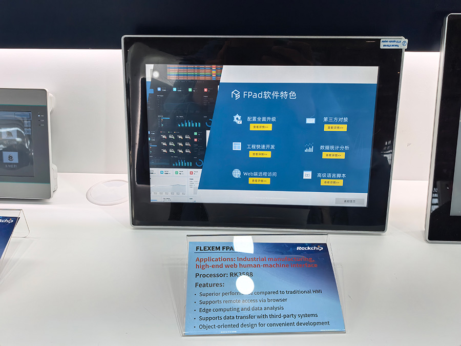 工業應用展區,瑞芯微通過HMI、PLC、工業網關、工業視覺四大細分場景,展示了其在工業控制層、感知層與邊緣計算層的全新技術方案及能力,呈現瑞芯微方案在接口豐富度、產品穩定性及環境適應性上的多重優勢,從輕量化到高性能全面覆蓋工業場景的多樣化需求。