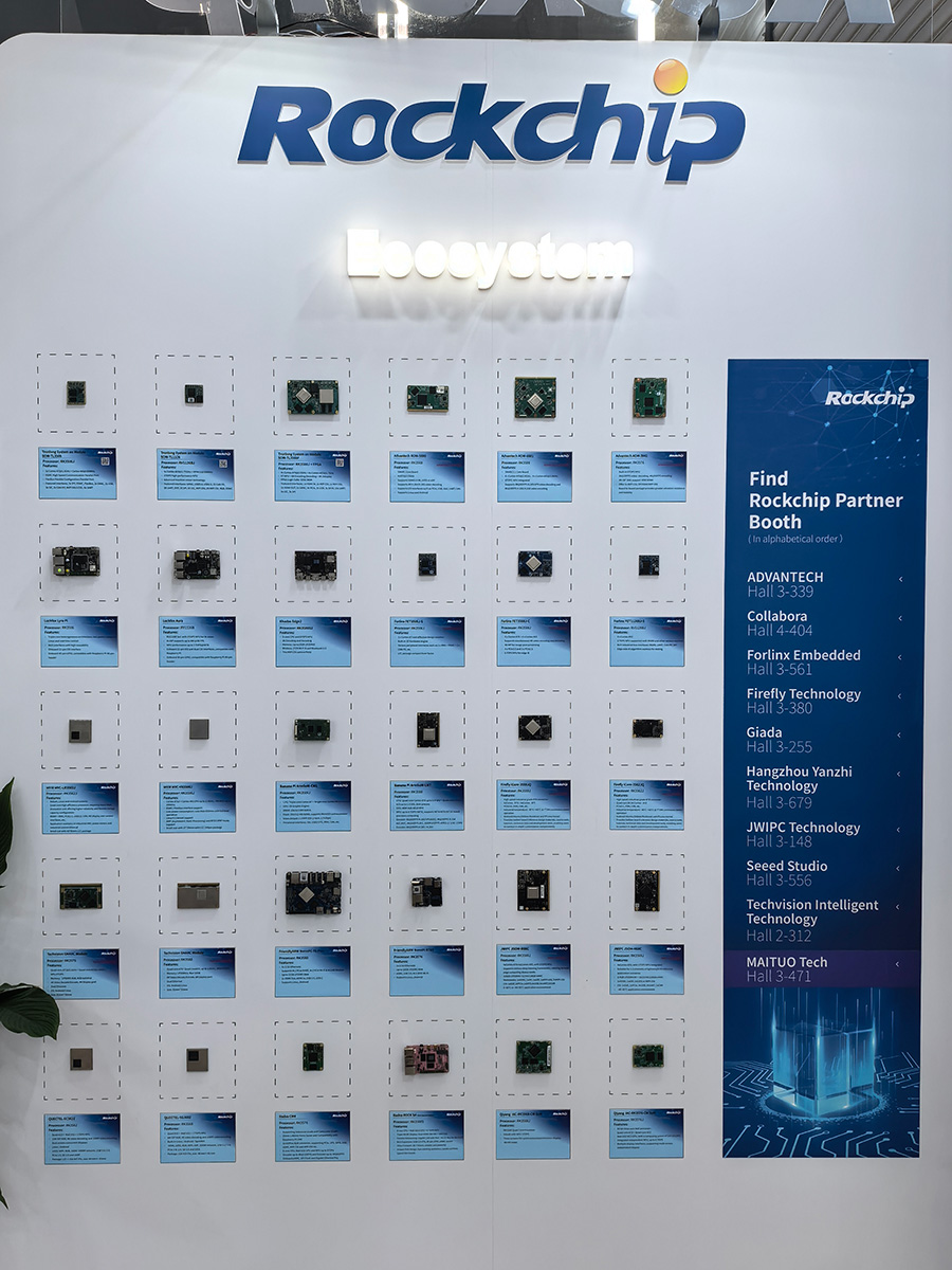 瑞芯微始終秉持與生態伙伴長期共建,攜手賦能終端伙伴加速場景落地的初心。在生態伙伴成果區展出了專注于工控領域的10余家合作伙伴的核心板及開發套件,搭載瑞芯微芯片包括RK3588J、RK3576J、RK3568J、RV1126BJ、RK3562J、RK3506J等,直觀呈現了瑞芯微生態資源的廣度與深度。