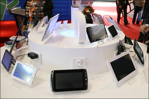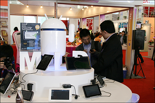 Google Vice President Dr. Liu Yun speaks highly of Rockchip's innovation progress on Android application area. Fujian Information Bureau Director Shao Yulong wishes Rockchip can make greater breakthroughs in chip-design and Mobile Internet application area. Rockchip leads the China Chip of smart Tablet PC by releasing RK2818 3G mobile Internet solutions. Cooperate with enterprises in Japan,South Korea ,Europe and Asian,Rockchip display dozens of Android +3 G New Tablet PC. By visual display of the terminal products, all people can experience the characters of the products. Rockchip+ Android robot, users can appreciate the charm of China Chip. The screen size of the new Tablet PC release by Rockchip covers 4.8-inch to 10.1-inch which achieves a leap in the application experience. The tablet PC Rockchip display has reached a high maturity,users can enjoy a smooth and balance connect of 3G and WLAN. The little cute Android robot gives a expression of opening,flexiblity and value from the new tablet PC. This Android Tablet PC use trackball + keypad + touch screen design, elegant simplicity of the ivory material,greatly elevate the texture feeling. This smart tablet PC also on exhibit on the earlier IFA, which supports WCDMA, with 5-inch touch screen + Android 2.1 system. This special Android player is designed by a new-born brand, refined UI and a medium size meets the demand of Asians. Comparing with last product, this sort of Android smart Tablet PC is designed more simple and delicate, rounded appearance with optical trackball is fit Asian sense of style. By contrast, this style is clearly more hale and hearty, and can support HDMI and OTG extend which makes HD entertainment and Android smart applications complement each other. The next is a big man,a 10.1-inch HD screen,a 10 mm ultra-thin design with Android 2.1 system is comparable to the netbook. The new smart Tablet PC is more fashion and virtuosity,Android 2.1 +3 G extension will add its charm. By 3G/WLAN, users can share QQLive (HTML5) video. Rockchip CEO Mr. Li Min exchange products using experience with businessmen friends. Rockchip booth is 6015 in Hall 6,its mature mobile Internet idea and rich application of new terminal products have gained great attention on the exhibition. Exhibition Information 2010 China International Exhibition .jpg)