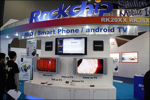 On April 12, 2011, a brilliant show of electronic products was performed at the booth of Fuzhou Rockchip Electronics Co, Ltd, on the China Sourcing Fair (CSF). With the new released RK29xx solution, terminal products including Android TV, MID and Smartphone has taken on a brand-new outlook with Gingerbread (Android2.3), attracting many buyers on the spot; other products on PMP and eBook are also shown to the buyers in this show.